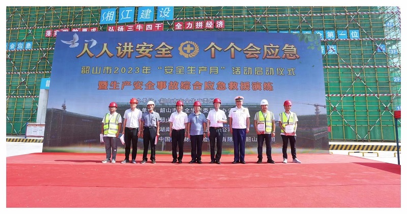 5月29日,韶山市2023年“安全生產(chǎn)月”活動啟動儀式暨生產(chǎn)安全事故綜合應(yīng)急救援演練活動在湘江公司韶山紅色培訓教育基地一期工程項目工地舉行。韶山市人民政府常務(wù)副市長、韶山市安委會副主任賀樹峰、韶山市消..