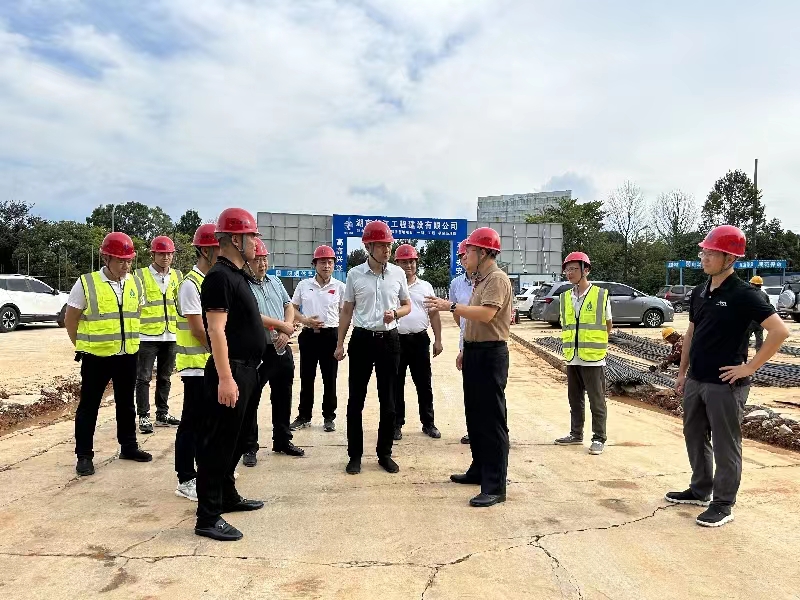 為做好高溫作業(yè)職工勞動(dòng)保護(hù)工作,切實(shí)維護(hù)職工勞動(dòng)和生命健康權(quán)益,9月11日,省總工會(huì)副主席馬暉一行來到湖南湘江工程建設(shè)有限公司韶山市產(chǎn)教融合職業(yè)教育園建設(shè)項(xiàng)目現(xiàn)場,向在高溫天氣下堅(jiān)守崗位,辛勤奮戰(zhàn)在一線的建設(shè)員工送去了關(guān)心關(guān)懷。湖南省地質(zhì)工會(huì)主席李定橋及湖南湘江工程建設(shè)有限公司黨委副書記、總經(jīng)理王曉龍一行陪同走訪慰問。