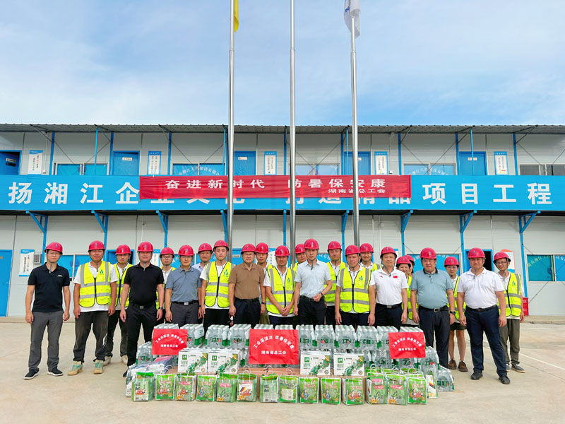 湖南省總工會(huì)到湖南湘江工程建設(shè)有限公司韶山市產(chǎn)教融合職業(yè)教育園建設(shè)項(xiàng)目開展“奮進(jìn)新時(shí)代 防暑保安康”慰問活動(dòng)