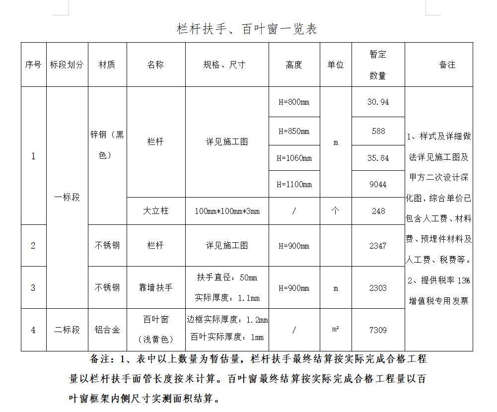 3、招標(biāo)范圍:校區(qū)內(nèi)房建工程欄桿扶手、百葉窗專(zhuān)業(yè)分包施工,詳情見(jiàn)欄桿扶手、百葉窗一覽表